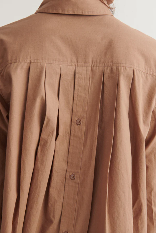 Silje LS Shirt is a timeless cotton shirt designed with a modern twist. It features long sleeves and a button closure at the back, creating a clean and sophisticated look. Subtle pleats at the back add volume and refinement, giving the shirt a unique character while maintaining a minimalist silhouette. The relaxed fit ensures comfort and freedom of movement, making it easy to wear throughout the day.